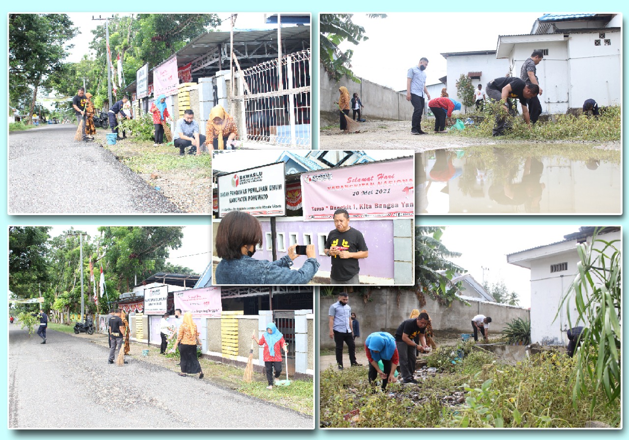 Rahmat Djakaria, S.IP menyampaikan. œ kegiatan yang dilakukan Bawaslu Pohuwato yakni gelar jumat bersih untuk memelihara lingkungan sekitar terutama dilingkungan Bawaslu, dan ini kami akan Programkan secara rutin di setiap hari jum'at, kami akan selalu melakukan kerja bakti œ. Ungkap rahmat